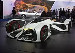 The name "Vision Gran Turismo" was originally used for a Gran Turismo HD trailer in 2006.[4] In 2013, to commemorate the Gran Turismo franchise's 15th anniversary, Polyphony Digital announced "Vision Gran Turismo", a special project featuring concept cars designed for the series by automakers and coachbuilders such as Alpine, Aston Martin, Audi, BMW, Honda, Infiniti, Italdesign Giugiaro, Mercedes-Benz, Nissan, Peugeot, SRT, Volkswagen, and Zagato.[5] Each Vision GT car added to the series was marketed as a car players could own and drive in-game.[6][7]