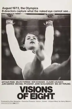 Visions of Eight is a 1973 American documentary film offering a stylized look at the 1972 Summer Olympics. Produced by Stan Margulies and executive produced by David L. Wolper, it was directed by eight directors. It was screened out-of-competition at the 1973 Cannes Film Festival.[1] It was later shown as part of the Cannes Classics section of the 2013 Cannes Film Festival.[2] Some visuals of the Munich stadium from the documentary were used in Without Limits.[3]