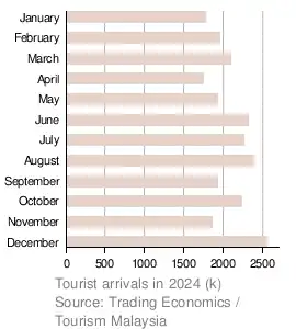 - ^ "Malaysia Tourism Statistics - Tourist Arrivals to Malaysia (2024)". Retrieved 28 February 2025.