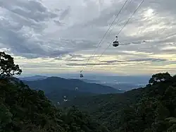 - The Langkawi Cable Car and Sky Bridge is one of the main attractions on the island to enjoy the view of the entire island group and UNESCO's national park. The Sky Bridge can be reached by first taking the cable car to the Top Station, where an inclined lift called SkyGlide takes visitors from the Top Station down to the bridge.[43] The bridge deck is 660 metres (2,170 ft) above sea level at the peak of Mount Mat Cincang.[44]