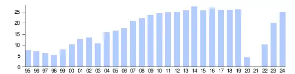 - ^ "Global and regional tourism performance". www.unwto.org. Retrieved 12 June 2025.