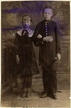 Putvinskis was born on 6 October [O.S. 24 September] 1873 in Riga,[1] then part of the Russian Empire, to a family of Polish-Lithuanian gentry. The family traced its roots to the times of Grand Duke Vytautas (died in 1430).[3] Putvinskis' father Rapolas inherited manors in Pavėžupis and Graužikai.[3] After the failed Uprising of 1863, Rapolas Putvinskis was deported to Siberia. He received amnesty in 1872, but was not allowed to return to Lithuania. Thus, he moved to Riga where he married Idalia Broel-Plater from the Plater family.[4] Their son Vladas was born a year later on 6 October 1873. Their daughter Marija (1876–1959) was also active in Lithuanian public life and the Riflemen's Union. She later married the painter and riflemen chairman Antanas Žmuidzinavičius.[3]