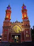 The Mukhtarov Mosque, built in 1906, dominates the city. In Vladikavkaz, there is a guyed TV mast, 198 meters (650 ft) tall, built in 1961, which has six crossbars with gangways in two levels running from the mast structure to the guys.