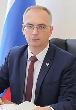 Vladimir Anatoliyevich Bidyovka (Ukrainian: Володимир Анатолійович Бідьовка, Russian: Владимир Анатольевич Бидёвка; born 7 March 1981) is a politician from the Donbas region, who served as Chairman of the People's Council of the Donetsk People's Republic (DPR) from 2018 to 2023.[1] Prior to the war in Donbas, during which he supported the DPR independence, he served as a lawmaker in the Verkhovna Rada between 2012 and 2014.