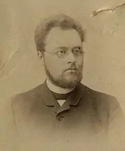 In 1871, Laurynas Ivinskis, a Lithuanian activist and publisher of the first Lithuanian calendars, was hired as a private tutor for Zubov. They became close and Zubov started learning Lithuanian language.[2] In 1873, Zubov enrolled into Šiauliai Gymnasium. Already as a high school student Zubov joined antigovernment activities. With support of his mother and using his family's personal library, Zubov established an illegal library among gymnasium students. Several banned books from the library were confiscated by the police.[3] After the graduation in 1881, he began studies of chemistry at the University of Saint Petersburg. One of his professors was Dmitri Mendeleev. He established contacts with socialist and even revolutionary activists, including members of Russian Narodnaya Volya and Polish Proletariat, he was also member of "Polish Commune" (Polish: Gmina Polska).[2][4] His apartment was a frequent gathering place for various activists. According to memoirs of Jonas Šliūpas, up to 40 students would gather in the apartment.[5] In 1882, after a student protest, Zubov was briefly imprisoned. However, that did not dissuade Zubov of liberal ideas. Eventually, he rejected revolutionary path and chose slower and steadier evolutionary activities.[2] In 1890, Zubov graduated from veterinary studies at the University of Halle-Wittenberg.[2]