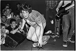 Void first performed in D.C. at a Wilson Center hardcore festival organized by Bad Brains, where the group was one of 15 bands present.[6] The band was notorious for its live act, which thrived off Weiffenbach's chaotic stage persona and his manic vocals. Additionally, Void's sound was marked by alternating blasts of power chords and shrieking feedback within brief but upbeat songs, creating a higher degree of intensity than most of their contemporaries.[7][8] In 1981, Void entered the studio for the first time, cutting demos titled "Condensed Flesh" at record producer Don Zientara's Inner Ear Studios. Songs from the session and additional studio time later in the year later surfaced on the Condensed Flesh EP in 1992.[9] Shortly thereafter, Ian MacKaye signed Void to his co-owned label Dischord Records, and the group made their debut in January 1982 on the compilation album Flex Your Head, which featured the three songs "Dehumanized", "Authority", and "My Rules".[10]
