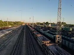 Volnovakha's main industry is railway transportation.[8] Volnovakha is a rail hub,[25] serving as the only onshore rail line between Donetsk and Russia to the north-east and east, and Zaporizhzhia Oblast and Crimea to the west and south-west.[26] It has the only rail line south to Mariupol.[27]