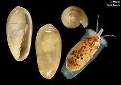 | The shell and animal of Volvarina virginieae (holotype at MNHN, Paris) | |