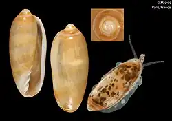 | Shell and animal of Volvarina maestratii (holotype at MNHN, Paris) | |