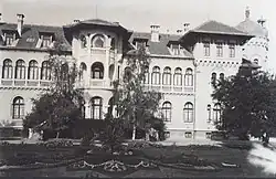 The extensive lot was bought by Tsar Ferdinand I in 1898[2] and was situated just outside Sofia whereas nowadays is inside the city proper. There is a large park and two buildings, the first one built in 1904 as a two-story hunting lodge commissioned to Georgi Fingov, and the second constructed mainly between 1909 and 1914 as a palace. The earliest building in the complex, the hunting lodge, has been described architecturally as an "exquisite interpretation of the Plovdiv baroque with Viennese decorative elements".[3]
