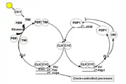 - ^ Cyran SA, Buchsbaum AM, Reddy KL, Lin MC, Glossop NR, Hardin PE, et al. (February 2003). "vrille, Pdp1, and dClock form a second feedback loop in the Drosophila circadian clock". Cell. 112 (3): 329–41. doi:10.1016/S0092-8674(03)00074-6. PMID 12581523.