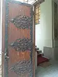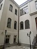The facade is completely preserved. The furniture, made after the designs of Dragutin Inkiostri, has been partially preserved and several pieces (e.g., a chair from the Minister's cabinet) are now in the Ethnographic Museum and the Museum of Applied Art in Belgrade.[7] Most of the original compositions on the walls have been destroyed over time. However, the wall ornaments in the gateway towards the courtyard are original as they were accidentally painted over after the Second World War. They were discovered by accident in 1963, cleaned, and the allegoric compositions of religion, education, history and art can be seen on them.[8] They were restored in 1997. Above the entrance to the building, the emblem of the Kingdom of Serbia[9] was placed, embedded into the Art Nouveau shaped two-colored, red and white facade, with originally blended motifs from Serbian Medieval architecture, elements of Serbian national tradition, as well as the decorative motifs from the European secession. The purpose of this object, which is a testimony to the continuity of the culture of education, has been preserved for one hundred and thirty-five years.