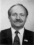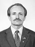 Viacheslav Maksymovych Chornovil (Ukrainian: В'ячеслав Максимович Чорновіл; 24 December 1937 – 25 March 1999) was a Ukrainian Soviet dissident, independence activist and politician who was the leader of the People's Movement of Ukraine from 1989 until his death in 1999. He spent fifteen years imprisoned by the Soviet government for his human rights activism, and was later a People's Deputy of Ukraine from 1990 to 1999, being among the first and most prominent anti-communists to hold public office in Ukraine. He twice ran for the presidency of Ukraine; the first time, in 1991, he was defeated by Leonid Kravchuk, while in 1999 he died in a car crash under disputed circumstances.