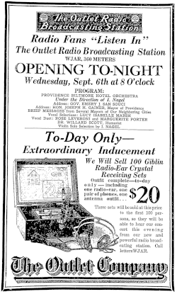 3. ^ WJAR (advertisement), Providence Journal, September 6, 1922, page 12.