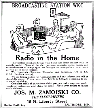 - ^ Joseph M. Zamoiski Co. advertisement (featuring WKC), Baltimore Sun, April 9, 1922, Part 4, page 6.