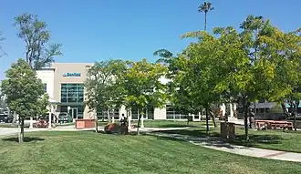 The central portion of campus contains Ethan Allan Park, the Health Professions Center (HPC), the Veterinary Medicine Center, and the Health Sciences Center. Ethan Allen Park is located directly west of the Pet Wellness Center. In 2006, the park was named in honor of Dr. Ethan Allen, founding chairman of the school's board of trustees.[71] The other park on campus is Centennial Park, a Pomona city park on the west end of campus. Directly south of Ethan Allan Park, the Health Professions Center houses the College of Pharmacy and contains several classrooms, research facilities, and a student commons area. The building was built in 1962 and was previously the Pomona Buffum's department store.[72] The university acquired the building in 1992, after first receiving the option to buy. The Center for Oral Health, a non-profit organization promoting oral health, is based in the Health Professions Center. The Health Sciences Center, directly west of the Health Professions Center, is a two-story, 72,000-square-foot building with the main anatomy laboratories, a laboratory for osteopathic manipulative medicine, and extensive classroom space. The physical therapy school is based in this building, as is the tutoring program. The Health Sciences Center was formerly a Nash Department Store.[34] The university began using the building in 1990, and then purchased it in 1993.[73]