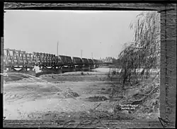Harry Monteith built a 22-span Waipukurau bridge.[70] A footbridge was added in 1883[71] and it was repaired in 1897.[72] It was replaced in 1978, at which time the stockyards were closed to improve the alignment of the track to the new bridge.[58] Tuki Tuki River bridge 171 is 288 m (945 ft) long.[73]