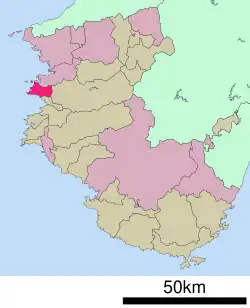 | 紀美野町 | 128.31 | 8,989 | Kaisō District | Town | | |