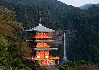 Mount Kōya (高野山, Kōya-san) in the Ito District is the headquarters of the Shingon sect of Japanese Buddhism. It is home to one of the first Japanese style Buddhist temples in Japan and remains a pilgrimage site and an increasingly popular tourist destination as people flock to see its ancient temples set amidst the towering cedar trees at the top of the mountain. The Sacred sites and pilgrimage routes in the Kii Mountain Range extend for miles throughout the prefecture and together have been recognized as Japan's 11th UNESCO World Heritage Site.[13]