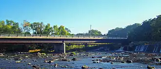 The Walden Low Bridge is the downstream of the two bridges over the Wallkill River in Walden, New York, United States. It gets its name from being lower to the river than the Walden High Bridge a short distance upstream (replaced in 2005 by the new Walden Veterans' Memorial Bridge). It is a steel continuous truss bridge built in 1987,[1] the latest in a series of bridges at that location that have been in place for at least a century. At 349 feet (105.7 m) in length,[1] it is the longest bridge over the river in Orange County that carries a surface road.