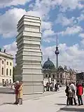 The installation of the statue "Der moderne Buchdruck" (Modern Book Printing) took place on April 21, 2006, at Bebelplatz opposite Humboldt University. The assembly of this 12.2-metre-high (40 ft) object on the street Unter den Linden took three days.