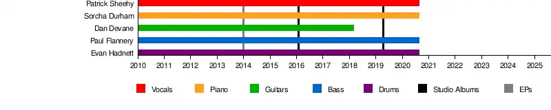 - Pa Sheehy – lead vocals, piano, guitar (2010–2020)