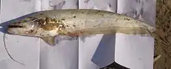 Wallago attu, boal, or helicopter catfish, is a species of freshwater catfish of the family Siluridae, native to South and Southeast Asia. W. attu is found in large rivers and lakes in two geographically disconnected regions (disjunct distribution), with one population living over much of the Indian Subcontinent and the other in parts of Southeast Asia. This species can reach a length up to 1.1 m (3 ft 7 in).[2]