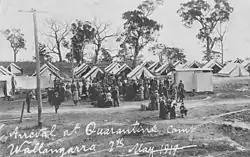 On 28 January 1919, the Queensland Government placed restrictions on the border crossing at Wallangarra to prevent the spread of the Spanish flu into Queensland, which were enforced by the Queensland Police. A medical screening process was used to determine if Queensland residents could safely return to the state.[11]