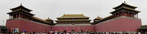 Chinese city walls (traditional Chinese: 城牆; simplified Chinese: 城墙; pinyin: chéngqiáng; lit. 'city wall') refer to defensive walls built to protect important towns and cities in pre-modern China. In addition to walls, Chinese city defenses also included fortified towers and gates, as well as moats and ramparts around the walls.