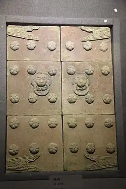 The oldest form of wall construction in China was of rammed earth. Stone rubble was used for the foundation. Bricks were also used but were less common. From the Zhou dynasty, bricks were made of adobe, until the Han dynasty, when baked bricks became common. It is not certain how common brick faced walls were during the Shang and Zhou dynasties. In the state of Xia (Sixteen Kingdoms), the Xiongnu engineer Chigan Ali had the workers bake bricks for wall construction, and if a hammer blow could make a depression in them an inch deep, he would have the responsible worker killed. He also had the earth used to make the wall boiled with rice to harden it. While Chinese city walls always had an earthen core, the outer facings could be of either baked bricks laid in lime mortar, or stone where it was commonly available, such as in Sichuan. Bricks were also used for constructing the sewer network below the Beijing city wall in the 16th century.[15] In addition to tamped earth, Chinese walls were sometimes reinforced with wood. A study of Han forts in Xinjiang found that they had brushwood and poplar interspersed between the layers of tamped earth.[16][17]