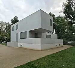 Aluminum City Terrace (1944) - Front view of the modern reconstruction of Gropius's house in Dessau (1925–1926). It was destroyed during World War II. This reconstruction (2014) was not built as an exact replica of the original house.