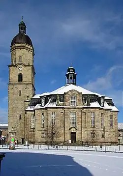- town church (1719–23), including the largest baroque organ in the state of Thuringia.[4]