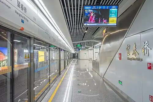 Wangchun Bridge Station (simplified Chinese: 望春桥站; traditional Chinese: 望春橋站; pinyin: Wàngchūnqiáo Zhàn) is a station on Line 1 of the Ningbo Rail Transit that started operations on 30 May 2014. It is situated under Wangchun Road (Chinese: 望春路) in Haishu District of Ningbo City, Zhejiang Province, eastern China.[1]