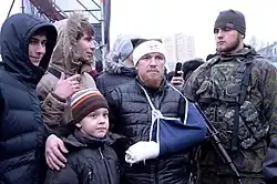 Five members of the Donbas Battalion were killed, along with four separatists.[165] Twenty members of the pro-government paramilitaries were wounded, and at least four were captured. The involvement of Right Sector was disputed by the leadership of the Donbas Battalion.[166] Pro-Russian leader Igor Bezler said that he executed all of the captured paramilitaries.[167] Another separatist leader confirmed four of their fighters were killed, and also said that ten pro-government paramilitaries and two civilians died.[161] During the same day, two pro-Russian separatists were killed during an assault by the pro-government "Ukraine Battalion" paramilitary on an occupied local government building in Torez.[168]