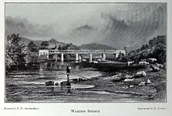 The first bridge at Warden for the railway between Newcastle upon Tyne and Carlisle was designed by John Blackmore and originally built of timber; it burnt down in 1848 and cast-iron arches were placed on the original piers.[1] A second bridge on a different alignment was completed in 1904 and remains in use as part of the Tyne Valley line.[1]
