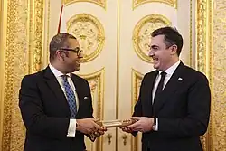 The United Kingdom–Georgia Strategic Dialogue, also known as Wardrop Dialogue is a high-level, annual strategic dialogue format between Georgia and United Kingdom that serves to address a wide range of co-operation issues, including foreign, security, and defense policy, as well as economy and trade.[2] The inaugural session of the dialogue was held in November 2014 in London during Foreign Minister Tamar Beruchashvili's visit in the UK. The meetings are held once a year, in London and Tbilisi alternatively.[3]