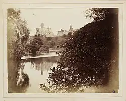 Around this time, the Percy family was becoming Northumberland's most powerful dynasty.[18] Henry de Percy, 2nd Baron Percy, was in the service of Edward III and was paid 500 marks a year in perpetuity in return for leading a company of men-at-arms. In exchange for the annual fee, in 1328 Percy was promised the rights to the Clavering estates. Parliament declared such contracts illegal in 1331, but after initially relinquishing his claim Percy was granted special permission to inherit. John de Clavering died in 1332 and his widow in 1345, at which point the family's estates became the property of the Percys.[13] While the Percys owned Alnwick Castle, which was considered more prestigious, Warkworth was the family's preferred home. Under the Percys a park was created nearby for hunting, and within the castle two residential blocks were created, described by historian John Goodall as "of unparalleled quality and sophistication in Northumberland".[18] The second baron died at Warkworth in 1352.[13]