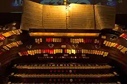 The theater features a unit orchestra (a pipe organ which includes numerous features and instruments, meant to be able to replicate sounds of a full orchestra with only one organist), which was manufactured by the Robert Morton Organ Company of Van Nuys, California and installed in 1928. The organ was to be used to accompany silent films. Around the same time the organ was to be installed, movies were beginning to include sound. The theater tried to cancel the order but the organ was installed anyway. The organ has 14 ranks built with 1,035 pipes and a four-manual console with 720 keys, pedals and combination pistons. The organ was used primarily for motion pictures until 1973. Because of the cost of paying orchestra members, most accompanying orchestras were replaced with unit orchestras.[3]