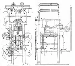 Heathcote's 1808 improvement of Whittaker's frame was essentially a warp knitting frame. The bobbin carrying beam was reduced to the same size as the machine- he called it a bobbinet.[3] Heathcote's second patent, in 1809, was for a bobbinet that could produce wide fabrics; this was the Old Loughborough.[4]