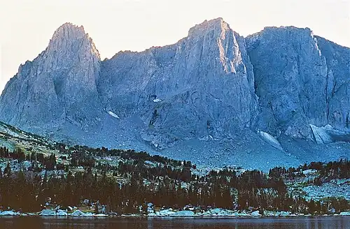 Warrior Peaks (12,411 feet (3,783 m)) is located in the southern Wind River Range in the U.S. state of Wyoming. Warrior Peaks is on the southern side of the Cirque of the Towers, a popular climbing area and is just west of War Bonnet Peak.[3] Warrior Peaks sits along the Continental Divide.