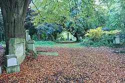 Warriston Cemetery contains 100 graves of Commonwealth service personnel, 72 from World War I and 27 from World War II, besides a grave of a Belgian soldier.[15] The cemetery also contains a CWGC memorial, at the end of the columbarium, in the form of panels listing 142 Commonwealth service personnel of World War II who were cremated here.[16]