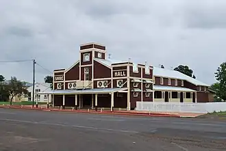 The Warroo Shire Hall was built in 1929 in Surat as an administrative and social centre. Surat is situated on the Balonne River some 80 kilometres (50 mi) south of Roma and was the administrative hub of the Warroo Shire until 2008 when the shire was amalgamated into Maranoa Region.[1]