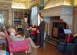 Tussauds kept the castle in use mainly as a tourist attraction, while making extensive restorations to the castle and grounds. In twelve of the apartments open to tourists after the sale, wax figures of historic people are presented. Those depicted here were guests at a weekend party in 1898 hosted by Frances, Countess of Warwick; the principal guest was the Prince of Wales, later Edward VII.[71]