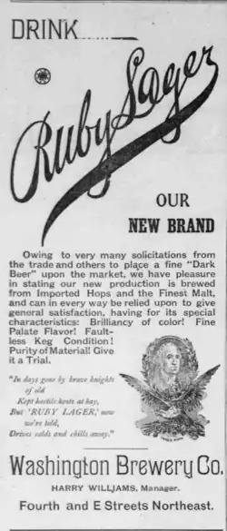 The Washington Brewery Company was a beer brewery in Washington, DC. It operated from 1890 to 1917 on Square 811 (bounded by 4th, 5th, E, and F Street NE).[1]