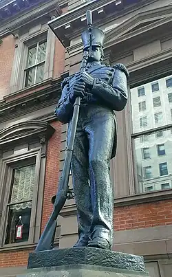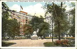 Washington Grays Monument, also known as the Pennsylvania Volunteer, is a bronze statue by John A. Wilson.[1] The monument represents the Washington Grays who served in the 17th, 21st and 49th Pennsylvania Militia during the American Civil War.[2] In 1925, almost 20 years after the sculpture was made, renowned sculptor and art historian Lorado Taft wrote, "No American sculpture has surpassed the compelling power which John A. Wilson put into his steady, motionless 'Pennsylvania Volunteer'."[3] Joseph Wilson built the base of the monument which was unveiled on April 19, 1872. Over 35 years later John Wilson sculpted the bronze statue, which was dedicated on April 18, 1908 at Washington Square, and rededicated June 14, 1991 at its present location in front of the Union League of Philadelphia, 140 South Broad Street, in Center City, Philadelphia, Pennsylvania.[4][5] The sculpture is positioned adjacent to the sculpture 1st Regiment Infantry National Guard of Philadelphia.