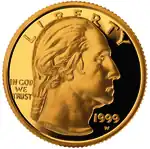 Mellon was aware of which artists had submitted which designs, and has been accused of discriminating against Fraser as a woman. Numismatic historian Walter Breen stated, "it has been learned that Mellon knew all along who had submitted the winning models, and his male chauvinism partly or wholly motivated his unwillingness to let a woman win."[13] Bowers, however, noted that Mellon had approved Fraser's designs for commemorative coins several times, as well as those by other women, and that no contemporary source speaks to any bias on Mellon's part. Bowers called the belief "modern numismatic fiction".[12] Fraser's design was used in 1999 as a commemorative half eagle issued 200 years after Washington's death,[12] and has been recommended as the obverse beginning in 2022.[14]