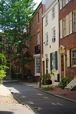 The Washington Square West Historic District was added to the National Register of Historic Places in 1984. The 61-acre (250,000 m2) area encompasses 450 contributing buildings. Located in the district and separately listed are the Clinton Street Historic District, Roberts-Quay House, and Portico Row.[6]