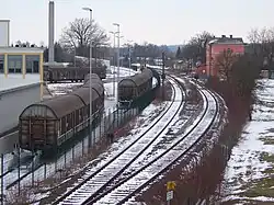 Wassertrüdingen station is a railway station in the municipality of Wassertrüdingen, located in the Ansbach district in Bavaria, Germany. The station lies on the Nördlingen–Pleinfeld railway. The train services are operated by DB Regio Bayern and for the museum traffic BayernBahn.