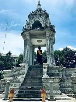Wat Phnom (Khmer: វត្តភ្នំ, UNGEGN: Vôtt Phnum, ALA-LC: Vatt Bhnaṃ [ʋɔət pʰnom]; "Mountain Pagoda") is a Buddhist temple (wat) in Doun Penh, Phnom Penh. The site features a pagoda, a stupa symbolizing the name of Phnom Penh, and a historical site that is part of the Khmer national identity. Wat Phnom has a total height of 46 meters (150 ft).[1] The pagoda is named after Lady Penh from the story of the discovery of the five statues: four Buddha statues and one Vishnu statue.