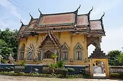 The temple is over 250 years old. It is remarkable that the ubosot (ordination hall) is a four-buildings with three-colours roof tiles. The stucco arts of the buildings were created by Phetchaburi artisans. The mural paintings on the wall were created by using local wisdom to mix gums and colour pigments therefore, the mural paintings have bright colour.